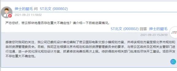 就东方山水名下土地,北京文化答股民问
