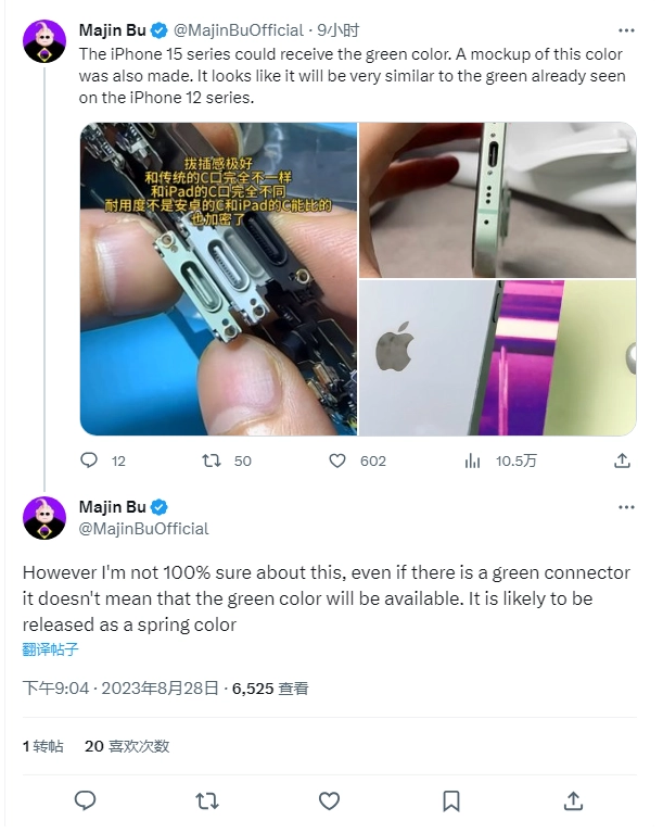 不过他也坦言仅仅从 USB-C 尾插,无法百分百确认苹果就会推出相应配色的 iPhone。