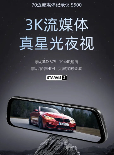 9 月 15 日消息,智能车载产品公司 70 迈宣布推出 3K 夜视流媒体 S500 行车记录仪,首发价 699 元,送 128GB 存储卡。