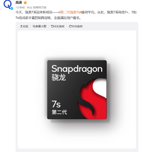 9 月 15 日闪讯速报,高通今日宣布推出第二代骁龙 7s 移动平台。从此,骁龙 7 系将由 7+、7 和 7s 组成更丰富的矩阵层级。