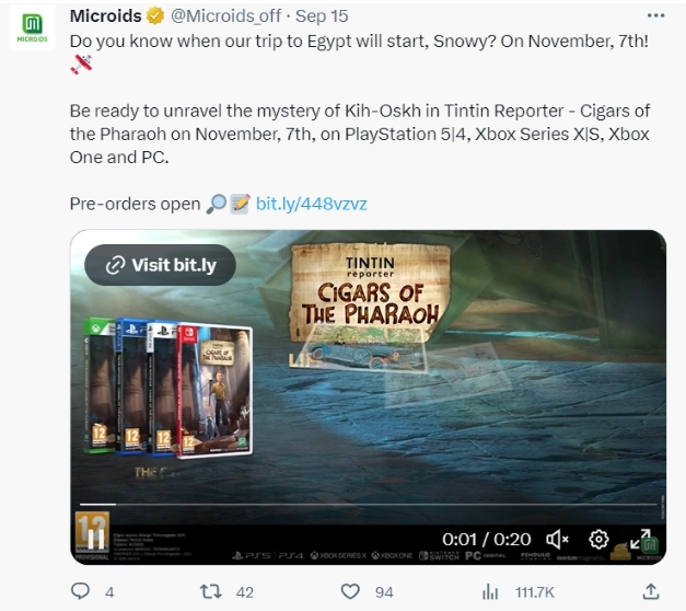原标题:漫改游戏《丁丁历险记:法老的雪茄》11 月 7 日发售:上架 PS、Xbox、PC,Switch 版明年推出