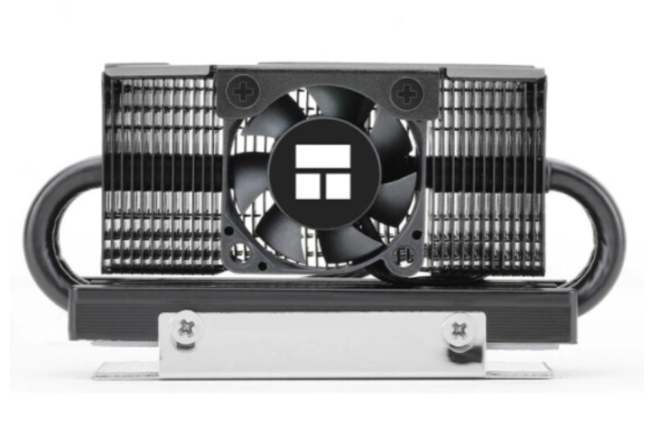 据介绍,这款 M.2 SSD 散热器采用了4 热管的设计,热管规格为 5mm,全电镀回流焊工艺;内置一个 3010 规格小风扇,3500-6000RPM 转速。