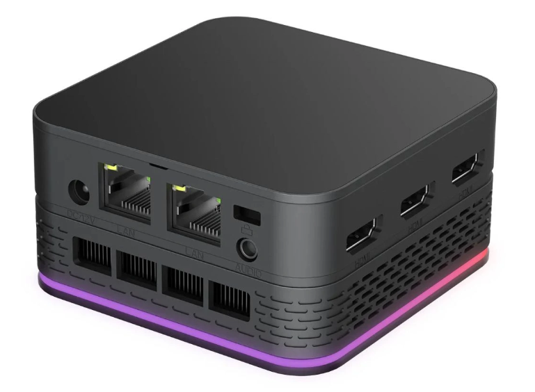 除了基础款外,T9 Plus 迷你主机支持升级,16GB+256GB M.2 SATA 固态硬盘需要 147 美元(当前约 1066 元人民币)、16GB+1TB PCIe 固态硬盘需要 181 美元(当前约 1312 元人民币);内置 M.2 2242 插槽,支持硬盘升级;内部自带散热风扇和 RGB 灯效照明。