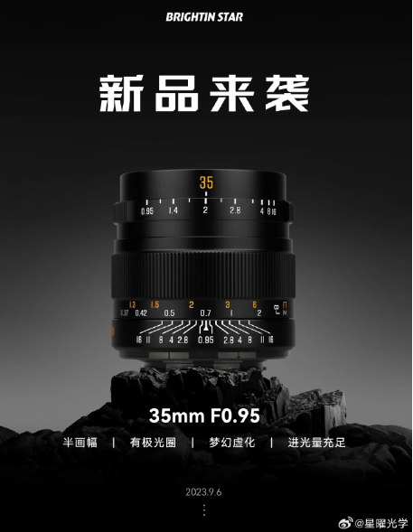 原标题:星曜公布新款 35mm F0.95 APS-C 手动镜头,9 月 6 日发布
