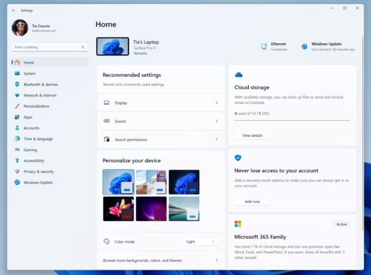 微软在 Windows 11“设置”中引入了一个新的主页,为用户提供动态和个性化的体验。它提供设备概述、快速访问关键设置,并帮助用户管理 Microsoft 账户。