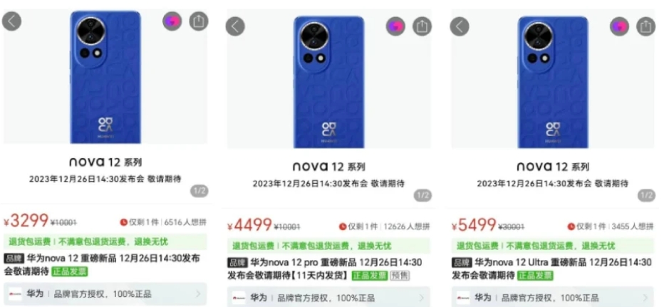上市显示,标准版Nova 12的起价为3299元,而Nova 12 Pro的起价为4499元。而顶级的Nova 12 Ultra售价为5499元。这些价格可能是基本存储选项的价格,更高的配置可能会花费更多。
