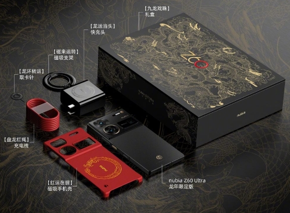 新发布的努比亚Z60 Ultra龙年限量版庆祝中国新年。努比亚的姊妹品牌红魔今天也推出了类似主题的红魔9 Pro。