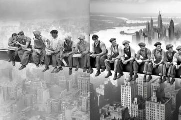 亚当斯的风景在精确娱乐方面可能是最相似的,而《移民母亲》、《艾比路》、《时代广场的 V-J 日》和《摩天大楼顶上的午餐》也都与人造的同类作品非常相似。