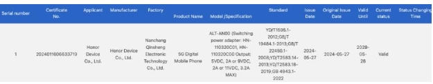 根据3C认证,智能手机将支持35W快充(11V,3.2A),与2023款荣耀X50系列的速度相同。