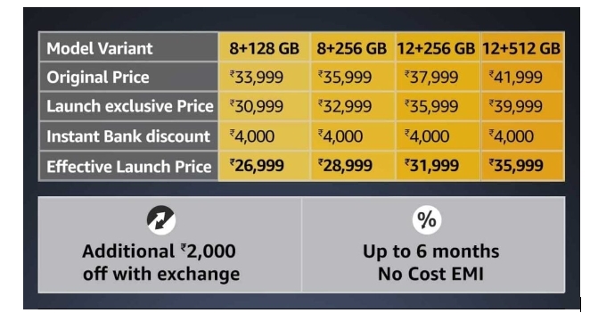 该设备的有效起价为 26,999 卢比(8GB + 128GB),在考虑发布独家价格和 4,000 卢比即时折扣后。