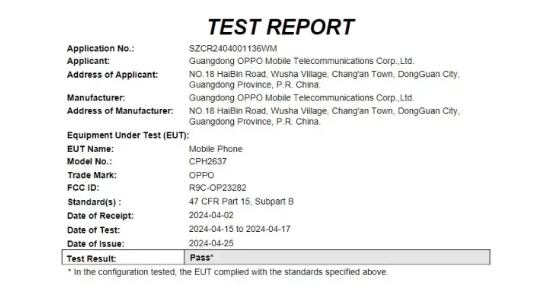 这家中国科技巨头的 Reno 12F 出现在带有CPH2637型号的 FCC 认证上。这款即将推出的智能手机列出了其电池组和充电适配器的 VCB4JAUH 和 BLPA79 型号。在TUV莱茵数据库中,还揭示了电池容量和快速充电速率。BLPA79 是一个 4,870mAh 电池,在 Reno 5,000F 上的额定值可能为 12mAh。